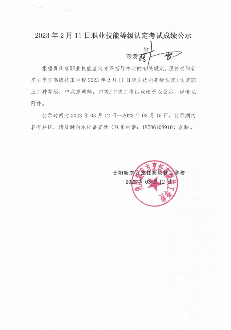 关于贵阳新东方烹饪高级技工学校职业技能等级认定的通知!
