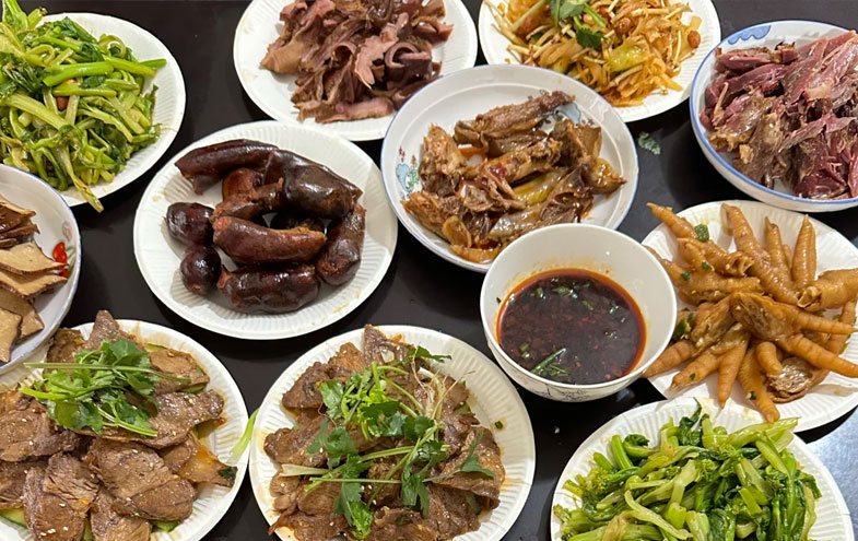 四川的杀年猪,主打一个“刨猪汤”,这名字一听就透着浓浓的乡土气息。杀年猪当天,主人家会像办喜事一样,邀请全村人来吃“刨猪汤”。七大碗八大碟摆上桌,那阵仗,仿佛要把一年的丰收都展示出来。主菜里,粉蒸肉粉糯香甜,回锅肉色泽红亮、肥而不腻,炒猪肝鲜嫩爽滑,每一口都是对味蕾的极致诱惑。而那一锅用粉肠、猪肝、血旺炖煮的刨猪汤,更是鲜得让人眉毛都要掉下来。大家围坐在一起,大快朵颐,欢声笑语回荡在农家小院。四川人讲究热闹,杀完猪还要“请刀儿匠”(杀猪师傅)吃顿饭,喝两杯。席间,划拳行令的声音此起彼伏,“哥俩好啊!四季财啊!”的吆喝声,就像一首欢快的年味交响曲,奏响了四川年味的正确打开方式。