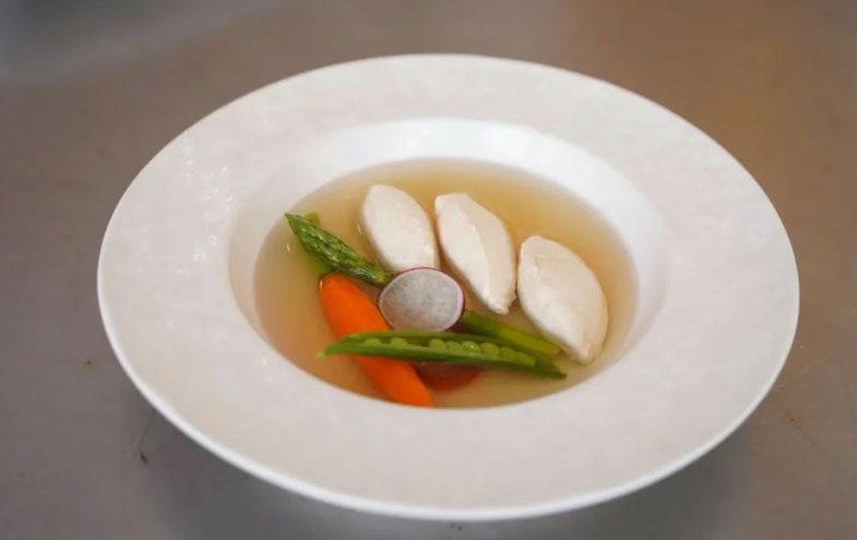 教师们以“传承不守旧,创新不忘本”为理念,将经典菜式与现代营养学结合。如某教师以“菊花豆腐”展现细腻刀工,将豆腐切出2000余根细丝仍不断,搭配用分子料理技术重构的“宋嫂鱼羹”,既保留传统风味,又实现低脂健康。评委点赞:“这道菜体现了教师对中华饮食文化的深度理解与创新转化能力。”
