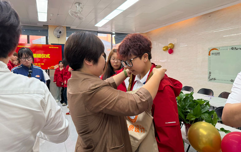 紧接着,是另一个令人激动的时刻——校长亲自为学生戴上象征性的围裙。围裙,在形象设计领域,是专业与责任的象征,它代表着同学们即将肩负起用双手创造美的使命。校长手持围裙,走到同学们中间,认真地为每一位同学戴上。当他为一位同学系好围裙的带子时,轻轻拍了拍同学的肩膀,语重心长地说:“孩子,从今天起,你就是形象设计大家庭的一员了。这围裙,是责任的寄托,也是梦想的翅膀。希望你在未来的学习中,能够坚守初心,用双手塑造出无数美丽的形象。”